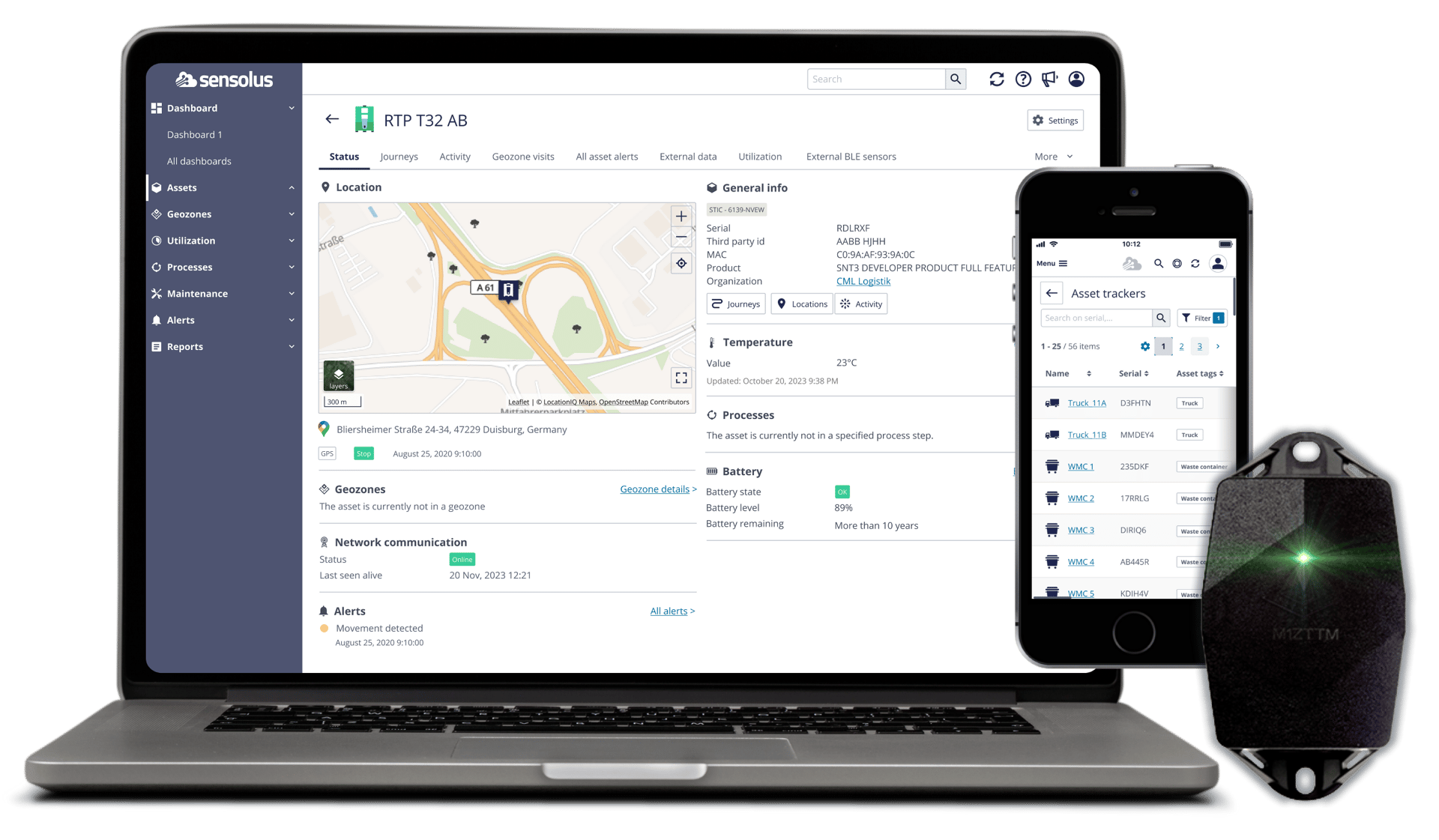 IoT tracking technology consists of two main components: wireless trackers that are attached to assets, and cloud-based software that collects, organizes and displays data from trackers. Photo courtesy Sensolus