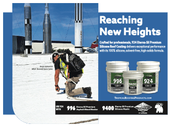 924 Eterna-Sil Premium Silicone Roof Coating, part of the Tropical by SOPREMA line, is expertly crafted for roofing professionals. Its 100% silicone, solvent-free, high-solids formula ensures exceptional performance and long-lasting protection. The Tropical by SOPREMA line offers a full range of coatings, including Silicone, Acrylic, and Asphaltic, along with solutions like RX Roof Repair-Solvent Free, designed to efficiently repair and seal weather-related roof damages.